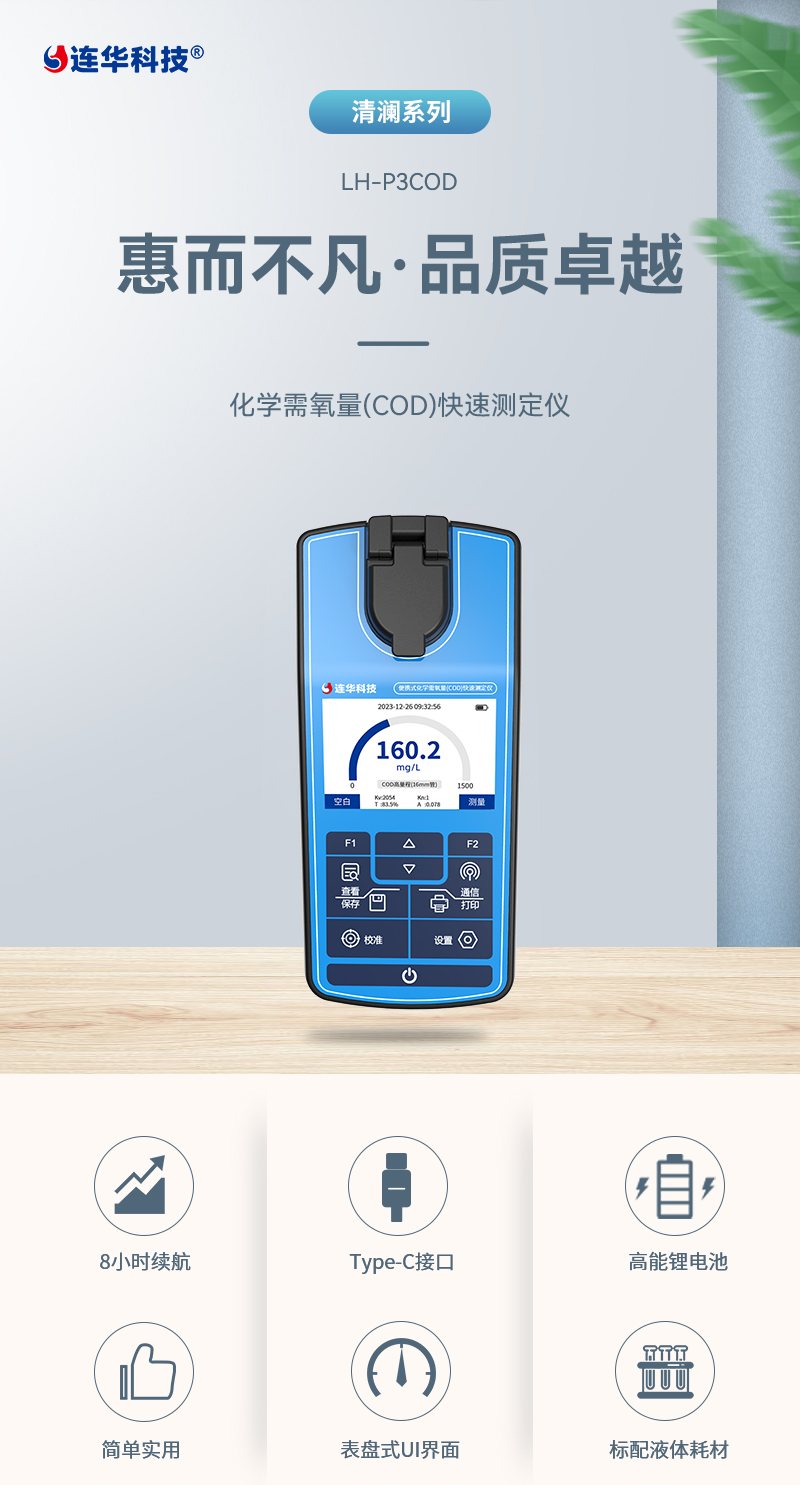 清瀾系列便攜式COD測(cè)定儀LH-P3COD功能特點(diǎn):